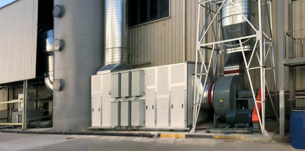 耦合催化系统设备采用不锈钢固定撬装式全密封结构,安装便利,内部涂敷不锈钢专用防腐材料,可耐酸碱废气环境,设备使用寿命长,由预处理段、耦合反应装置、阵列抽屉式模块组成。